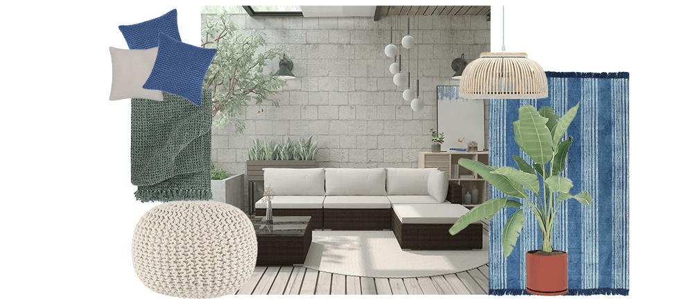 أكمل المظهر بإكسسوارات تذكرك بحياة الجزيرة. اختر مجموعة البطانيات والوسائد باللون الأبيض والأزرق أو ذات النقوش الاستوائية. زيّنه بقماش المكرمية، والشموع البيضاء، وتركيبات الإضاءة مثل فوانيس الروطان المعلّقة.أضف سلال الروطان الديكورية، ومقاعد الخيزران، والوسائد القطنية.